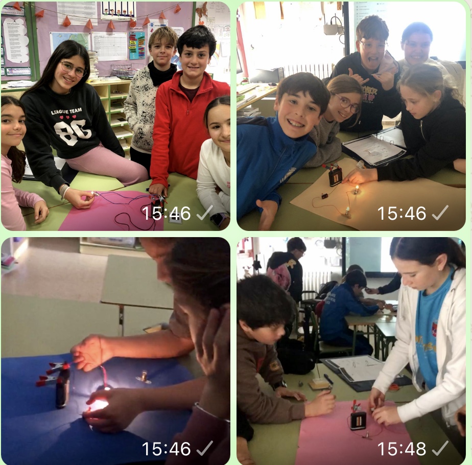 Perquè circuli corrent elèctric en un circuit necessitem com a mínim un cable elèctric, una pila i una bombeta. Pelar els cables per posar en contacte el coure, que és transmissor del corrent i tancar el circuit.l 2. Sí, és possible que un objecte exerceixi força sobre un altre sense tocar-lo, com en el cas dels imans, a causa de l'atracció magnètica. 3. Els pols oposats amb càrregues diferents, positiva i negativa s'atreuen i els de la mateixa càrrega es repel·leixen. 4. Perquè la terra funciona com un gran imant. L'interior de la terra té característiques d'un imant bipolar i, per tant, genera un camp magnètic. L'imant de la brúixola se sent atret pel pol Nord geogràfic.