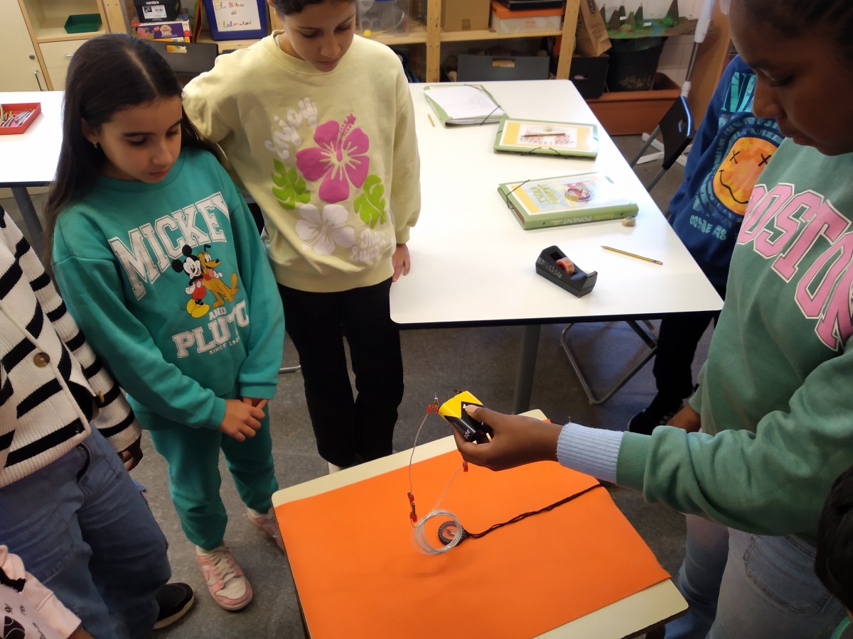Avui a laboratori hem descobert que la Terra té un camp magnètic! Unde petit, no gaire fort. Primer hem fet una cosa de baixa complexitat: hem construit un circuit elèctric, que nosaltres ja haviem realitzat en múltiples ocasions, i després hem fet girar un circuit elèctric al voltant de la brúixola, i… hem fet girar la agulla amb l’electricitat! Després hem sabut que l’electricitat i el magnetisme són com la mateixa cosa, i que es diu científicament “electromagnetisme”. Ha estat interessant i motivador! Estem esperant el pròxim repte! Adéu! Adama