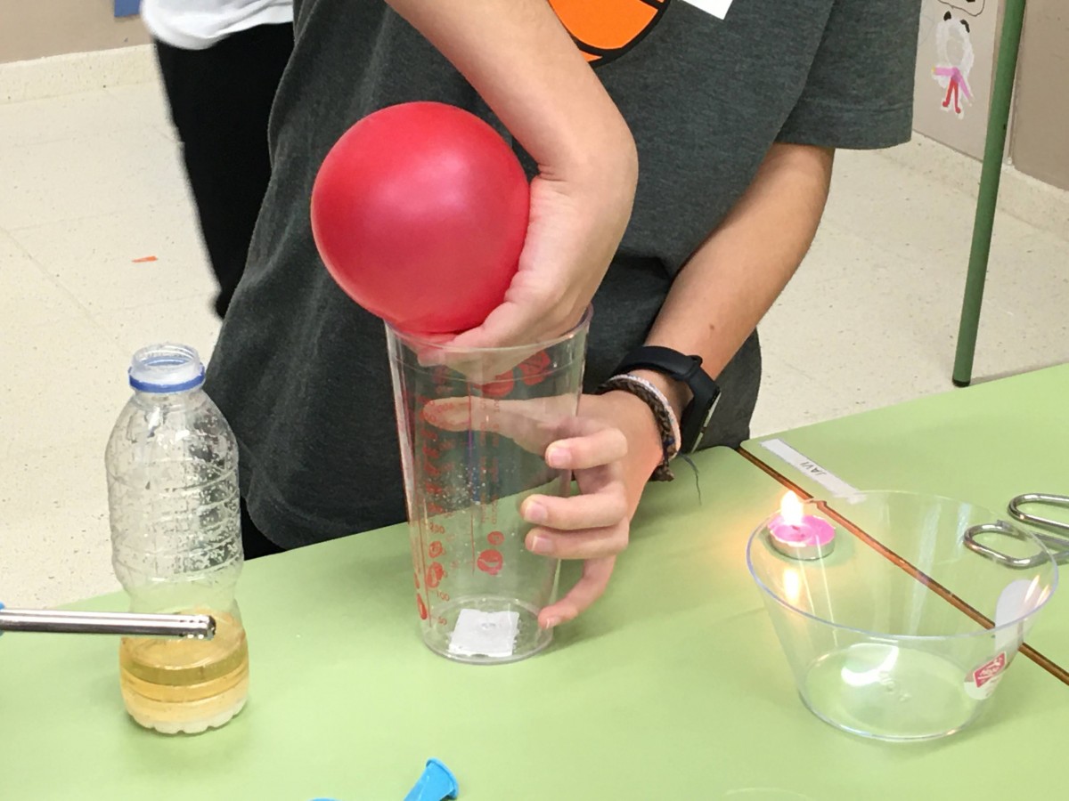 Hem aprés que el CO2 i en general els gassos pesen i ocupen un espai. També que si ajuntem vinagre i bicarbonat es produeix una reacció química a on surt el CO2. Que depenent de la quantitat de producte la reacció química serà major o menor. Ens ha sobtat que les espelmes s´acabin apagant en contacte amb el diòxid de carboni i que els globus s´inflin sense bufar-los amb la combustió de bicarbonat i vinagre. Endavant bombolla Oceànica!!!!