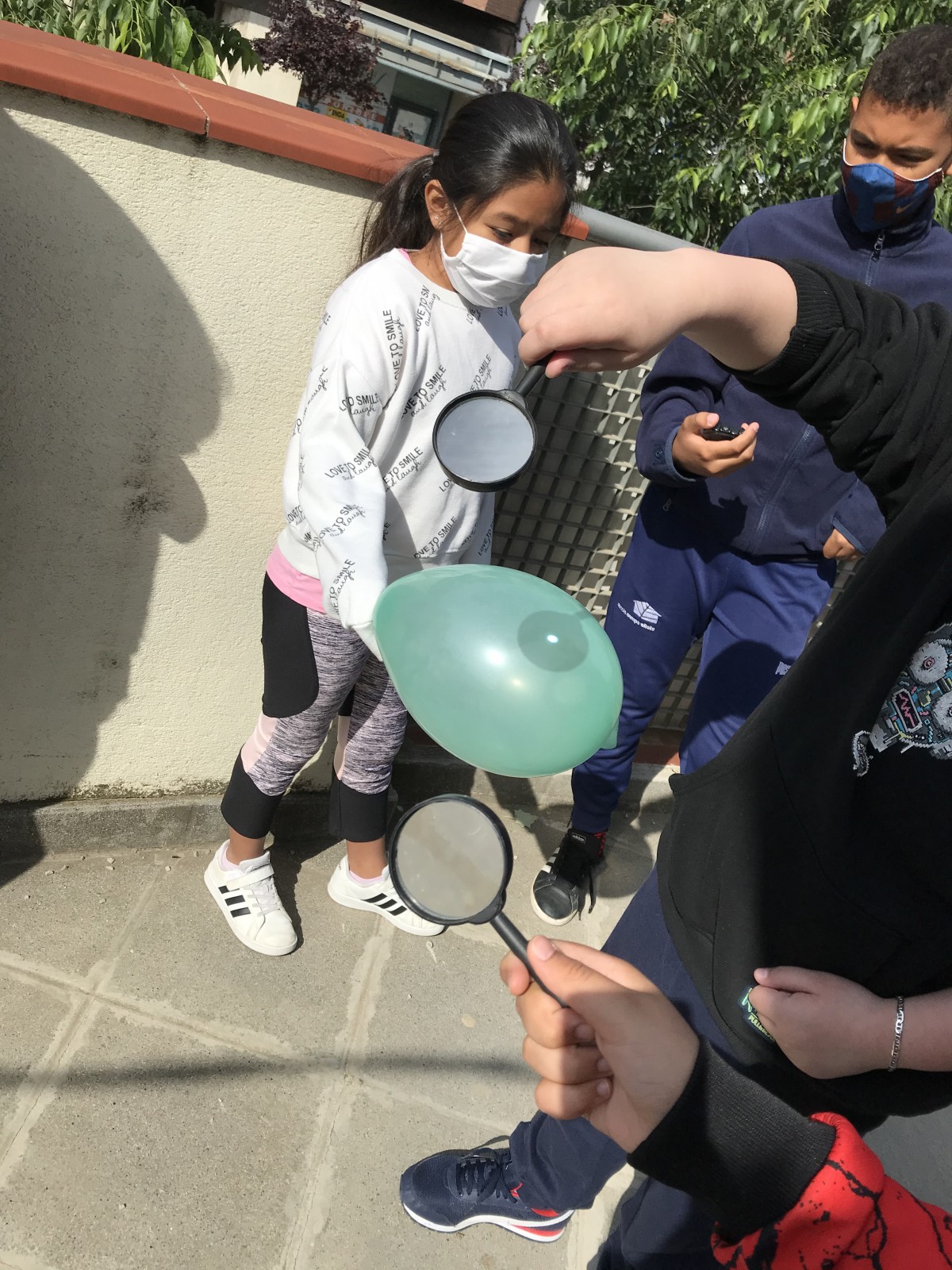Els colors absorbeixen els rajos solar, hem observat que els colors foscs com el negre peten abans que els colors clars i el blanc no arriba a explotar mai. Quan la llum solar ens toca directament a la pell, i més a hores del migdia, quan el sol està damunt nostre, ens crema la pell. Quan un material rep energia solar, aquest s'escalfa i inclús pot arriba a petar. Això ens porta a pensar un nou experiment. Si posem crema solar damunt d'un globus tardarà més estona a explotar? En el nostre entorn podem trobar energia solar (sol), eòlica (vent), hidràulica (aigua), biomassa (excrements), geotèrmica (terra).